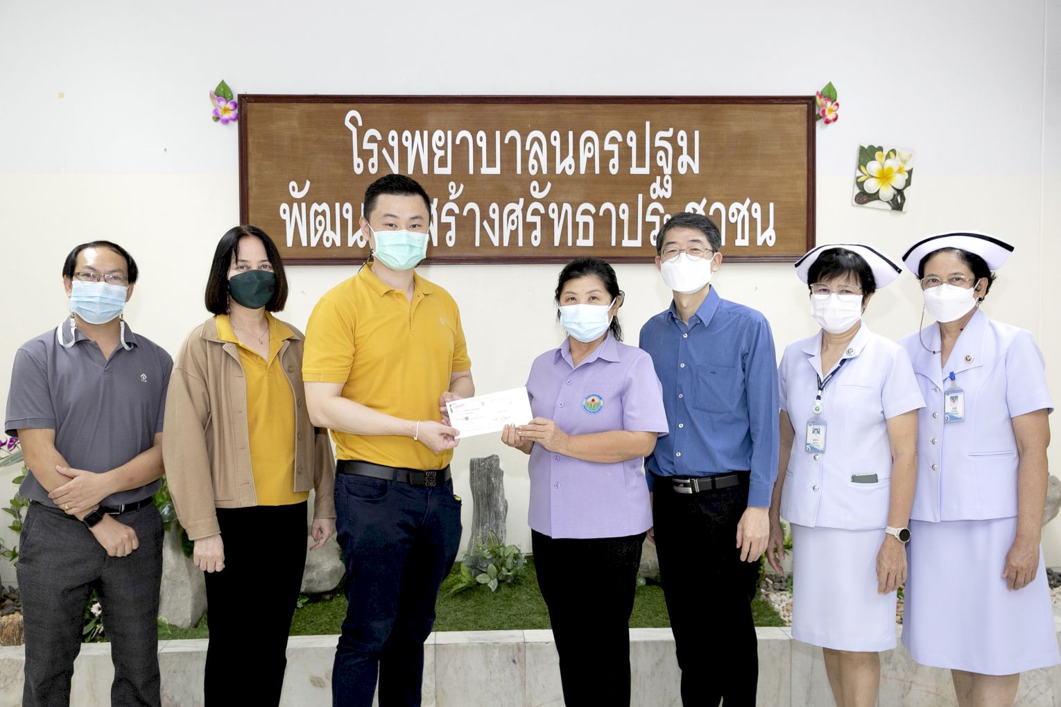 to support Nakhonpathom Hospital for purchasing the medical equipment, the anesthesia machine with a ventilator and the carbon dioxide monitors and anesthesia to expand the potential of treating patients who are hospitalized by Dr. Dararat Ratanarak, Director of Nakhonpathom Hospital was the recipient.
