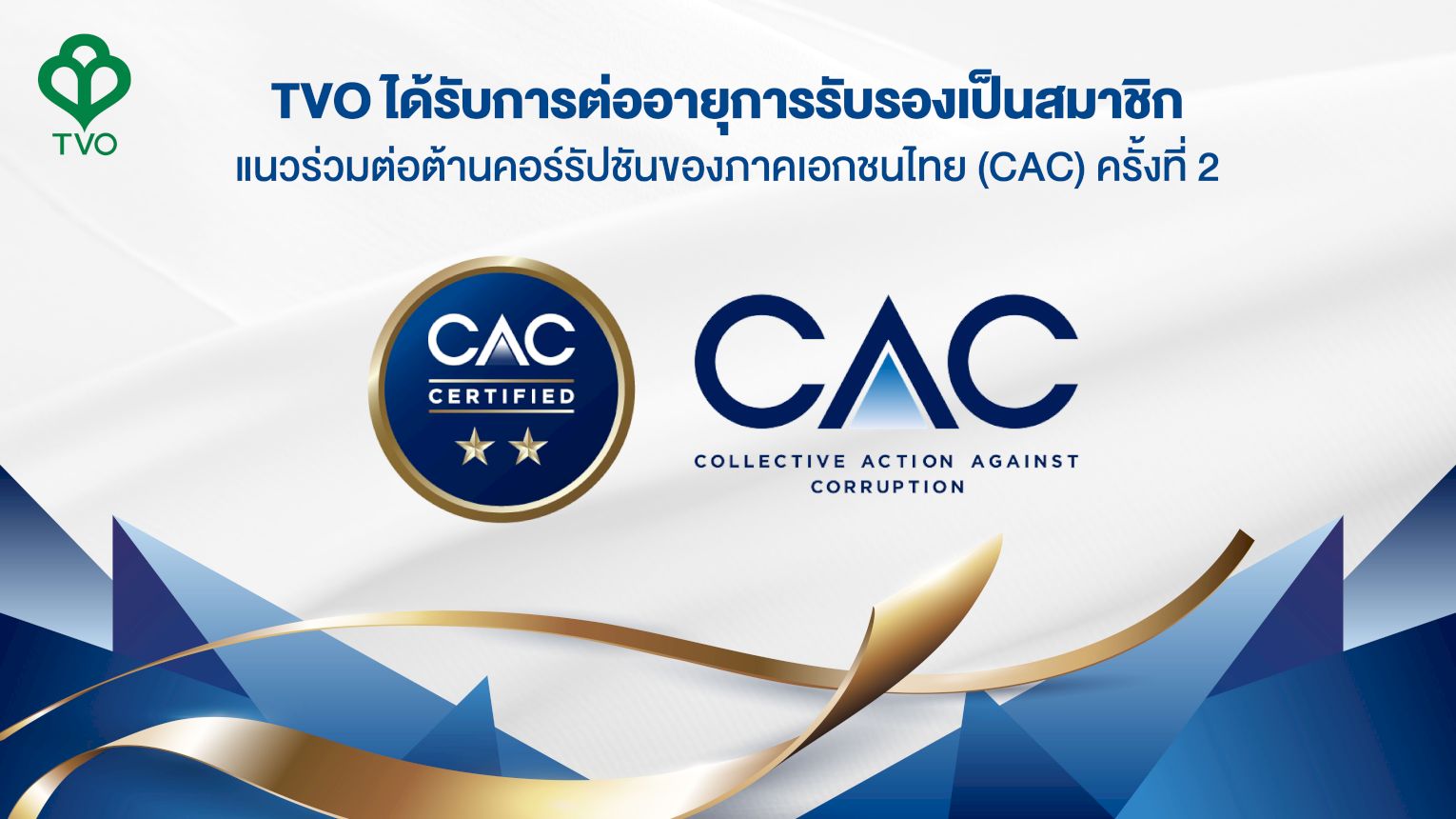 TVO ได้รับการต่ออายุการรับรองสมาชิกแนวร่วมต่อต้านคอร์รัปชันของภาคเอกชนไทย (CAC) ครั้งที่ 2